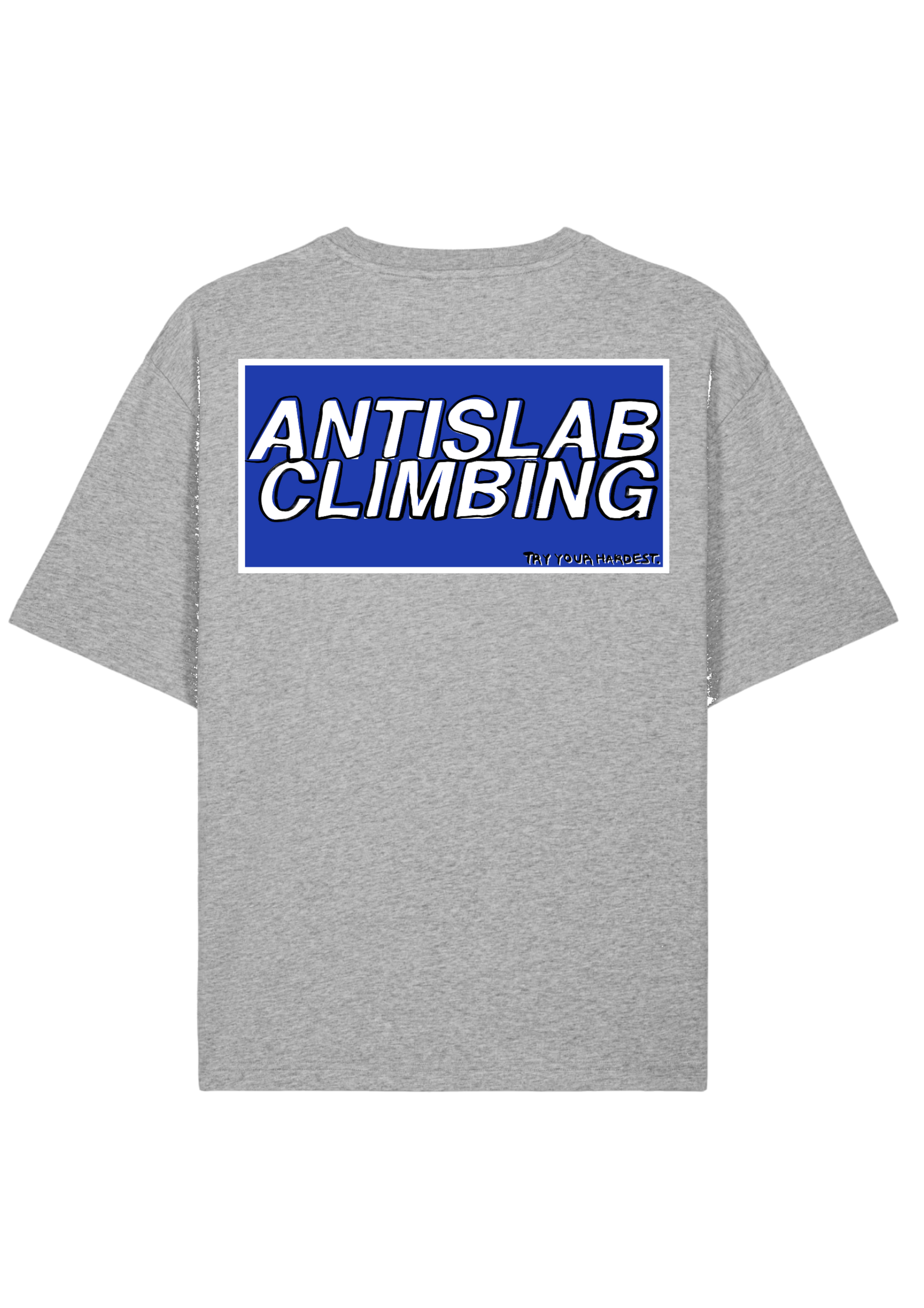 -Boxy relaxed fit, dropped shoulders, and twin-stitched wide neck ribbing.